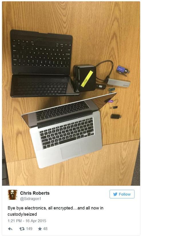 在审讯之后,FBI没收了罗伯茨的两部笔记本电脑、几个硬盘和U盘。