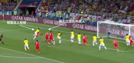 凯恩制造桑切斯犯规,赢得点球 从动图上可以看得更加清楚一些,英格兰对于哥伦比亚存在的后点空间攻击非常成功,凯恩几乎是从一开始就认准了这个点。哥伦比亚被英格兰其他球员带空了后点,从角球到点球,这真的是一个战术作用的结果。