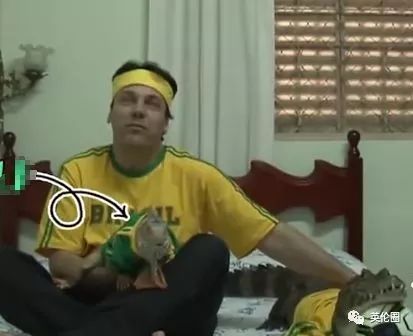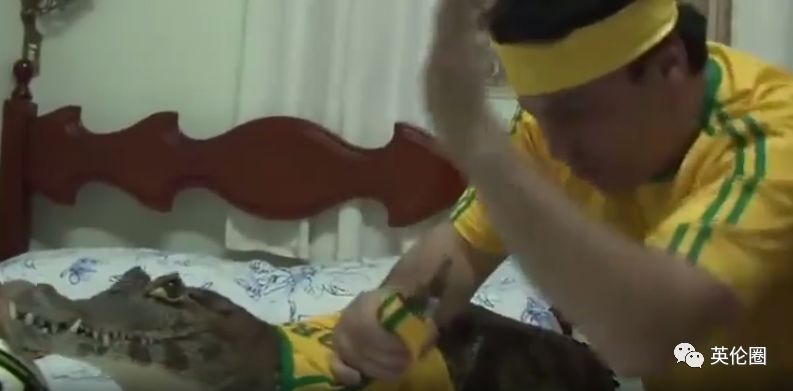 抱着鳄鱼看世界杯 巴西一名球迷的看球方式也是有些特别,作为一名生物学家,该男子家里收集了各种奇奇怪怪的的动物,在观看世界杯期间,他竟然抱着自己最喜欢的一只大鳄鱼一起看球,还给它穿上了巴西球衣。