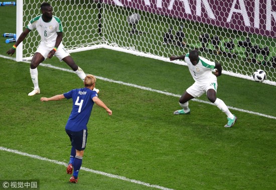 北京时间6月24日,世界杯H组小组赛,日本vs塞内加尔,比赛第78分钟,日本球员本田圭佑和队友配合,最后本田圭佑门前将球推射入网。 |