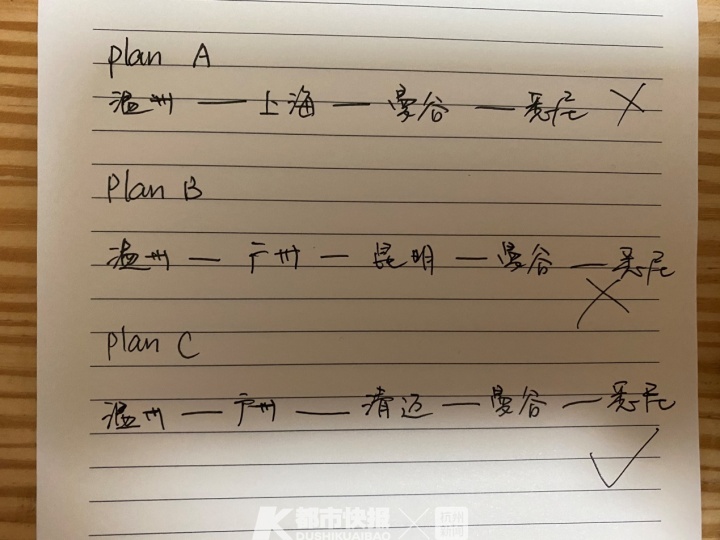 “上个学可太难了!” 今天(2月27日)是温州姑娘小易在泰国曼谷自我隔离的第10天。除了每天下楼一次,去7-11购买一整天的伙食,小易就宅在酒店房间,用强韧的意志坚持禁足。 这一切源于澳大利亚的一则入境限制。 受中国新冠肺炎疫情影响,2月1日,澳大利亚内阁国家安全委员会举行会议,决定实施严格的新旅行限制并更新旅行建议:在中国大陆的非澳大利亚公民(永久居民除外),在离开或过境中国大陆的14天内不得进入澳大利亚;20日,澳大利亚宣布将旅行禁令再延长一周至2月29日;2月27日,澳大利亚宣布再次延长旅游禁令到3月7日。 这令小易这样的澳大利亚留学生们陷入“入澳难”的窘境。“第三国隔离14天”作为曾短暂地出现在澳大利亚卫生部官网上的声明,没有完全明确却是唯一可行的方式,成为大多数国内留学生首选。 决定中转泰国隔离14天 仍改签了三次飞行方案 小易是悉尼某大学研一的留学生,原本2月24日就应该开学,却被疫情阻止了赴澳路。 此时有两种选择,要么申请休学,要么去中转第三国自行隔离。小易选择了后者。 我问小易为什么不申请休学,她的理由很实在:所学的是会计专业,一是怕耽误一学期跟不上学习的进度,给按时毕业增加难度,很多勤奋的华人同学早在去年12月就已经赴澳学习语言课;二是因此影响的很多相关手续都要重新再申请一遍;三是会因此浪费很多钱,“房租啊学费啊,我们学校没有给中国留学生减免学费的政策,真的很贵啊。” 2月14日,得知有校友已经通过中转第三国隔离14天顺利入澳,小易决定马上买机票,第二天就出发,能办理落地签的泰国是首选。 ![]() 小易手写了她三次改签的线路 受访者供图 一开始,她买的是上海直飞曼谷的机票,结果买不到温州-上海的高铁票。小易的父亲想要自驾送女儿到上海机场,因为疫情防控,没有机票不能入城,只能送到高速口。 随后,她改签了温州-广州-昆明,再飞曼谷;却在落地广州时,收到信息,后程飞昆明的航班取消。 小易又手忙脚乱地买到了两天后广州飞清迈的飞机,这意味着,还要在广州多停留两天。 而此时的温州和武汉一样,被其他城市列为重疫区。好不容易订到了旅馆入住后,小易还接到了盘查电话,询问温州来广州的目的。 两天后,小易才踏上飞往清迈的航班,还要再次中转已经订好了酒店的曼谷。一路折腾,对于才20岁的小易来说,筋疲力尽。 ![]() 离开家乡的凌晨 小易匆匆拍下一张街景 复杂的数学题 14天到底怎么算? 2月17日,凌晨4点,小易到达清迈。 她回忆,飞机上乘客不多,下飞机进入航站楼后,有戴着口罩的泰国工作人员为乘客检查体温。后半程,从清迈飞曼谷,则没有任何检查,步骤跟平时一样简单。 ![]() 落地泰国的机场 小易对着天花板的镜子自拍一张 给不容易的返校囧途留个念 小易告诉我,最近在曼谷街头,但凡是看见十几二十岁的中国同胞,一搭话,八成是中转曼谷去澳大利亚赶着开学的学生。 入驻曼谷酒店后,小易也开始了自我隔离的日子,尽量不出门、避免接触人群。她也给自己做了严格的每日起居计划:每天上午9点起来上网课,中午下楼一趟去便利店买一整天的伙食,下午上一到两个小时网课,晚饭后,再上网课到夜里9点,中间时间该休息休息该追剧追剧。“泰国近来枪击案不断,每晚跟父母保平安也是必要的功课。” ![]() 自我隔离在曼谷的酒店房间里 上网课是小易最主要的功课 小易告诉我,澳大利亚有一些学校已经向中国留学生提供了一学期的学费减免或者第三国中转的补助金,但是她所就读的学校没有,而且已经开学,为了不落下课程,她一直在学校的网站上跟着当天录制的视频自学当天的课程。 每天下楼一趟除了购买自足物品,也为了保留隔离的证据。小易根据已经顺利返澳的校友经验,入境时除了提供机票、住宿证明,还有护照上超过14天的中国离境日期和泰国入境/出境日期,还留下了消费凭证。 ![]() 小易刚到达曼谷,乘车前往酒店 有一个让小易困惑的问题是,14天到底怎么算? “我们习惯都是按照日期来算14天,但听说有留学生入境时因为日期的算法没有拿到登机牌。”如果是要求“掐头去尾”,即去掉落地和离开的当天,还需满足完整的14个24小时,否则入境可能被拒——这就意味着,连头连尾,小易必须在泰国待上16天,而根据泰国签证规定,落地签只能停留15天。“如果到时候上不了机,我打算再去延长泰国签证的时间。” 第三国中转去澳洲增长翻倍 经泰国中转狂飙237倍 “近一个月内,16-24岁学生群体经第三国中转前往澳大利亚的人数较去年同期增长97%。受到出入境政策的限制,政策较为宽松的泰国、马来西亚、日本成为热门中转地。”去哪儿网的工作人员透露,凭借宽松的签证政策及较低的机票成本,现在各中转地中,泰国的客流量是最高的。 去哪儿网数据显示,16-24岁的学生群体,由泰国前往澳大利亚的人数较去年同期暴增237倍,马来西亚、日本紧随其后,分别增长12.9倍、6.14倍,其次才是韩国。 ![]() 小易在房间里拍摄的窗外 事实上,不仅仅是澳大利亚,在全球其他各个国家和地区的留学生们都受到了疫情的影响。中转第三国再回学校,成为很多留学生的选择。 除了泰国、日本等临近国家,近期前往阿联酋的人数也大幅增长,其中经迪拜出境的人数较去年增长57%,16-24岁的学生群体增长近2倍。 具体来看,前往欧洲的留学生倾向从阿联酋、日本、泰国中转,