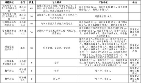 招人了! 青山湖公安分局特巡警大队 中国铁路南昌局集团有限公司招聘 共招640人! 快来看看适不适合你吧 青山湖公安分局特巡警大队 为进一步维护青山湖区良好的社会治安秩序,打造和谐、平安青山湖,提升群众安全感,青山湖公安分局特巡警大队面向社会公开招聘辅助人员。现将招聘有关事项公告如下: 一、招聘要求 (一)招聘人数及岗位 本次计划面向社会公开招聘辅警人员100名(其中1名高级管理人员、1名文秘、98名男辅警)。 (二)基本条件 1。辅警:无任何违法犯罪记录、不良信用贷款记录;身体健康无传染性疾病、显露性纹身等。男性身高不低于172cm;能适应大队日常工作和集体生活。退伍军人、警校毕业生优先考虑,有体育专长、散打特长优先考虑。 2。高管人员、文秘:大专以上学历,会写材料的优先考虑。 (三)有下列情况之一者,不得报考: 1、有违法犯罪前科的,或者有犯罪嫌疑尚未查清,正在接受审查或被有关机关采取强制措施的; 2、曾被开除、辞退或曾为公安辅警人员但因违反有关管理规定而被解除劳动合同的;或者有重大民事、经济纠纷尚未解决的; 3、其他原因不适宜在公安辅警工作岗位的。 二、招聘程序 (一)报名 1。报名时间(现场报名请于工作日工作时间内报名) 2020年3月2日始至招满即止。 2。报名方式 (1)现场报名(含资格初审)。 报名地址:青山湖区京东南大道689号(机动警察) 3。报名需提交材料 1、本人居民身份证原件; 2、本人近期一寸免冠同底彩色照片2张; 3、退伍军人带好退伍证原件。 4、培训前提供无犯罪证明。(由户籍所在地派出所开具) 5、三甲医院的体检合格报告(包括血压、心电图、肝功能三项) 资格审查贯穿招聘工作的全过程,凡发现应聘者不符合公告所要求的招聘资格条件的,取消其聘用资格。后果由报名人员自行承担。 三、工资待遇及晋升空间: 高级管理人员工资5000元(五险另外购买),辅警队员工资3850元(含五险),优秀辅警奖励300,职务津贴:副班长600元,班长800元,副中队1200元,包吃住。大队有健身器材,热水,网络,洗衣房等便利设施,都是免费提供,另外每月增设优秀辅警。年底分局和市局会针对表现突出队员颁发“荣誉证书”等。 四、联系电话 咨询电话: 市青山湖公安分局特巡警大队0791-88866201 金班长:17379128597 刘班长:15170410605 中国铁路南昌局集团有限公司 中国铁路南昌局集团有限公司,招聘2020届本科及以上学历毕业生540人。 一、招聘岗位 ![]() ![]() 二、招聘条件 1。品行端正,遵纪守法,热爱铁路事业。 2。在校期间所学专业方向为铁路专业方向或所学课程中包含铁路专业课程;或就读院校为生源和教学质量优秀的国家重点建设工程高校。 3。身心健康,视力良好,身体条件符合招聘岗位要求;无色盲色弱,无癫痫、精神病、抑郁症等病史,无运动功能障碍及其他不适应岗位工作要求的身体疾病或缺陷。 4。列入国家招生计划,具备派遣资格的2020年应届全日制普通高等院校毕业生。 5。学习成绩优良,符合招聘岗位要求的学历、专业等条件。 6。服从单位对岗位的安排和调整。 三、报名时间 截至2020年3月31日 四、咨询电话 0791-87021951 咨询时间:报名期间工作日 8:00-12:00 14:00-18:00 感兴趣的朋友请在报名截止时间前登录中国铁路人才招聘网进行网上报名(首次登录需进行网上注册)。每位应聘毕业生按所学专业限报1个招聘岗位。 来源:中国铁路、南昌人力资源市场 |