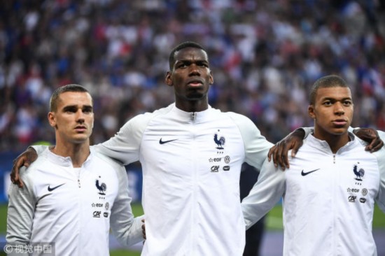 次战秘鲁姆巴佩初露峥嵘 【次战摇摇晃晃,只进一球】 作为平均年龄最小的法国队,应该说是体力最充沛的,但在世界杯前两场比赛中完全看不出来。尽管在面对印加军团秘鲁时,法国人以最“实惠”的方式拿下了胜利。但是无论从场上的活力,还是德尚的调整,都看不出这是一支志在争冠的队伍。 而且本来能够打出N种进攻套路的法国人在第二场小组赛所取得的进球和第一场比赛所取得的进球套路一模一样——博格巴断球后找吉鲁,吉鲁似传似射先被破坏掉,二点姆巴佩包抄得手。似乎除了高点找吉鲁,法国队就没办法进行更好的进攻了。 虽然说德尚在第一场比赛中开启“无锋阵”不管用之后,还是做了自我修正重新启用吉鲁,但法国队整体表现依然平平无奇,完全看不出是有着十多亿身价的球队,要知道法国的攻击线是有多么的豪华啊!